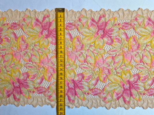 2024-74 beige stretchkant met roze en gele print