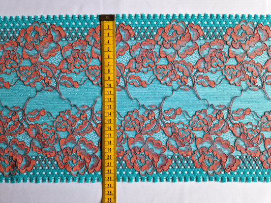 Bruin rekbaar, geborduurd tule kant met bloemen