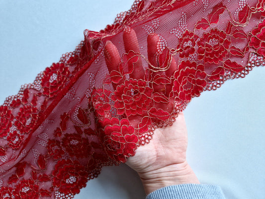 2024-35 diep rood stretchkant met goudkleurig lurex draadje