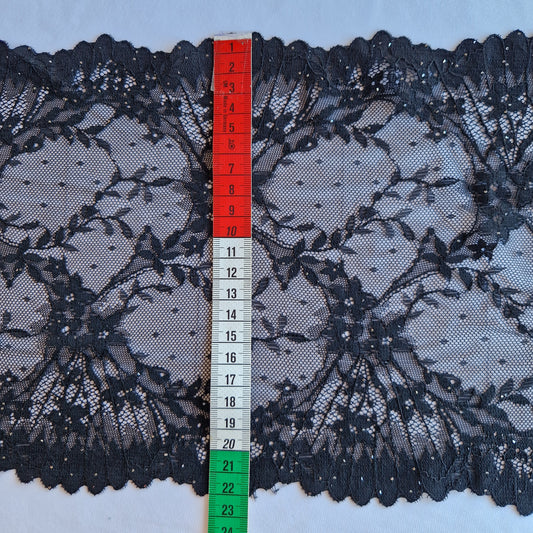 2025-42 gebreid zwart stretchkant met minuscule zilverkleurige pailletten