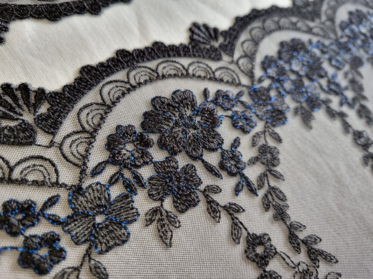Luxe sexy, zwart tule kant met bijzonder bloemen borduursel.