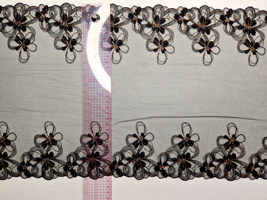 2024-14 Zeer luxe zwart tule kant bloemen in zwart en koper