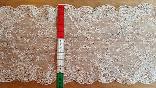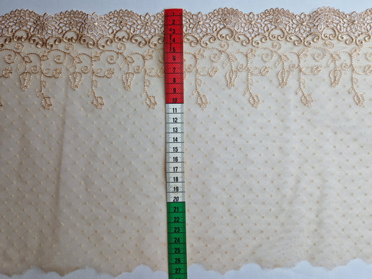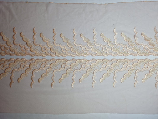 2024-144 peach kleurig tule kant met geborduurde wolken, voorzien van suptiel iriserend lurexdraad (zie filmpje)
