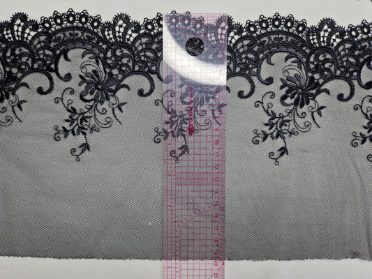 2024-19 Sexy zwart tule kant met zeer mooi opengewerkt geborduurd randje