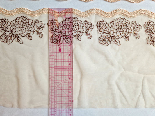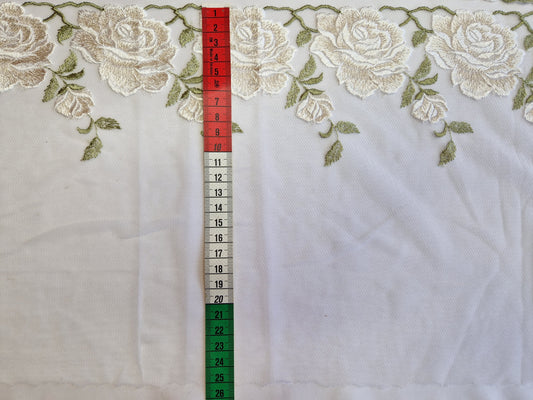 2024-156 wit tule kant met champagne/wit kleurige, geborduurde rozen