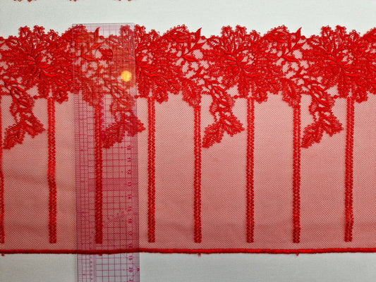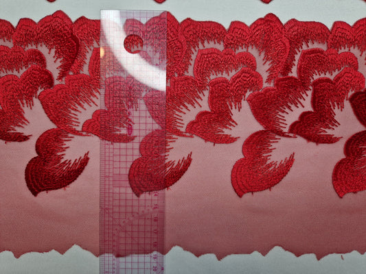 2024-24 rood ton sur ton tule kant met geborduurde bloemen