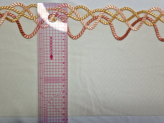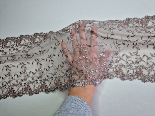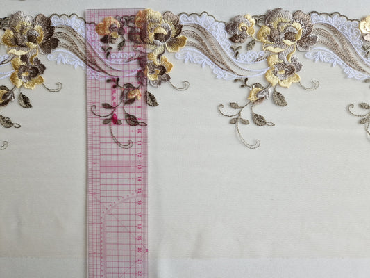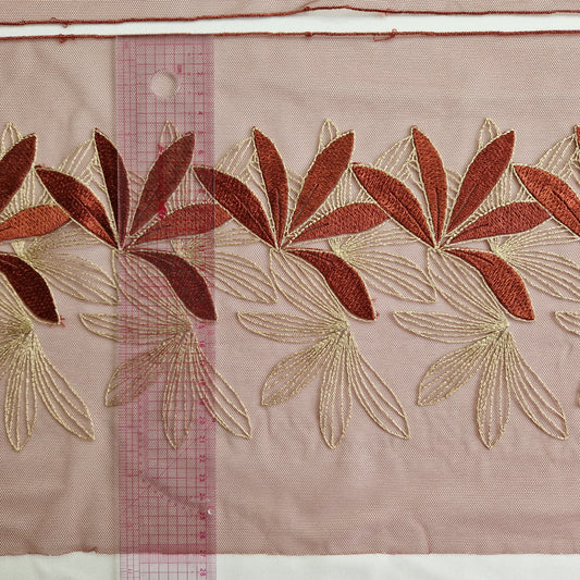 2024-37 roestbruin tule kant met goudkleurig lurex draadje