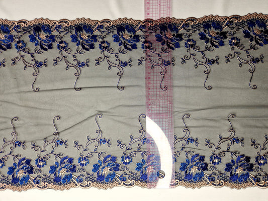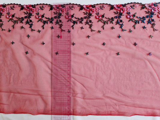 2024-39 rood tule kant met kleine iriserende, geborduurde bloemetjes