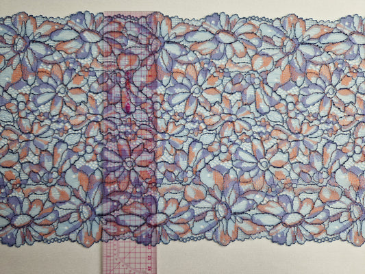 2024-36 roze rood stretchkant met oranje bloemetjes