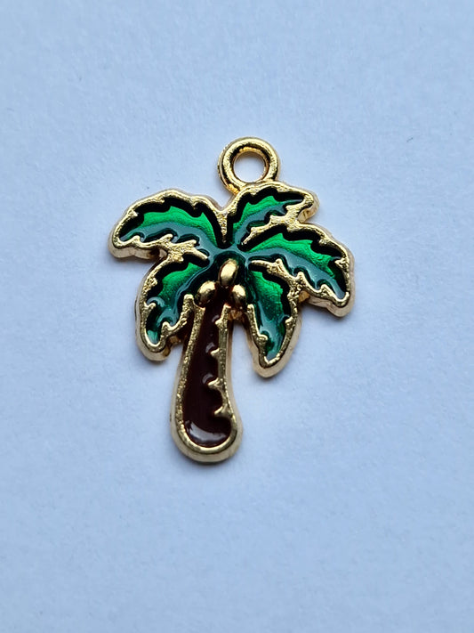 Bedeltje, goudkleurig, emaille ingelegd palmboompje