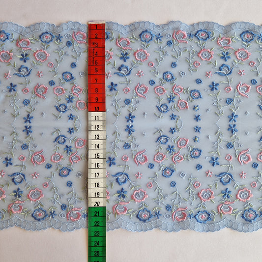 2025-36 Frans blauw stretchkant met geborduurde roosjes