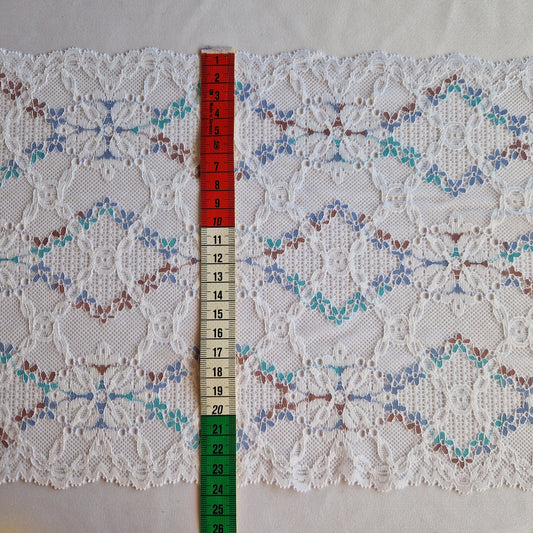 2025-45 gebreid wit stretchkant met geometrisch bloemetjes design in multi color