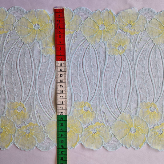 2025-48 wit stretchkant met geborduurde lentebloemen in pastelkleuren