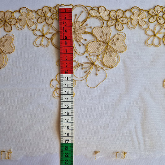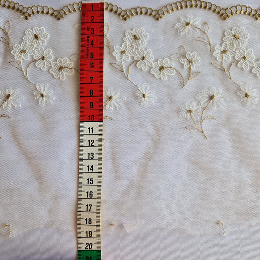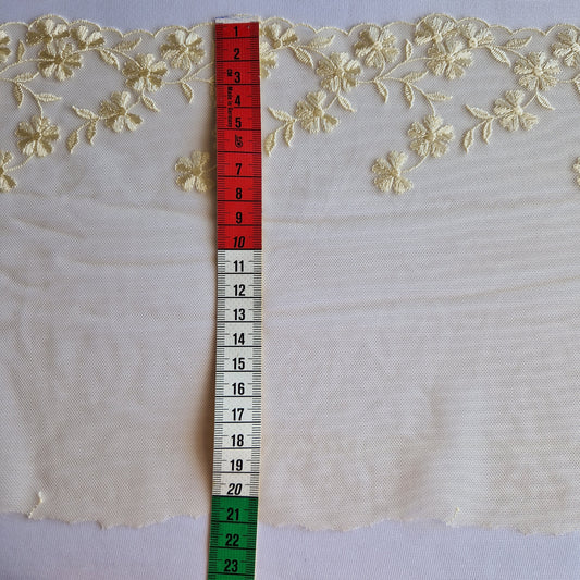 2025-55 ecru kleurig tulekant met ecru kleurige bloemetjes