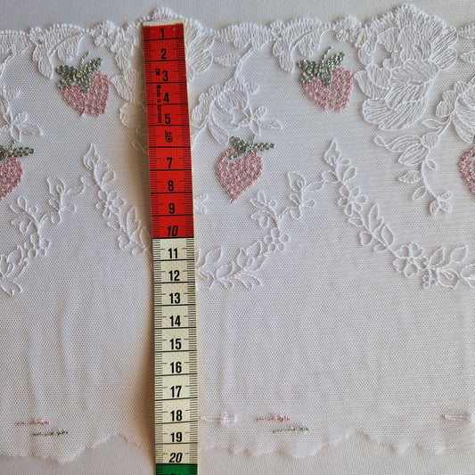 2025-53 sneeuwwit tulekant met framboosjes in roze en zilverkleurig lurex draad