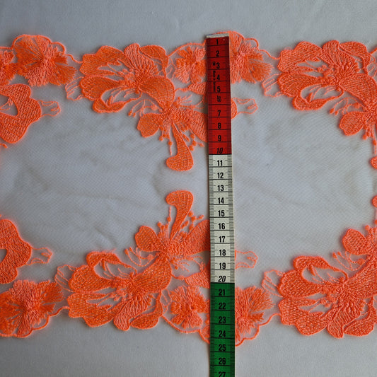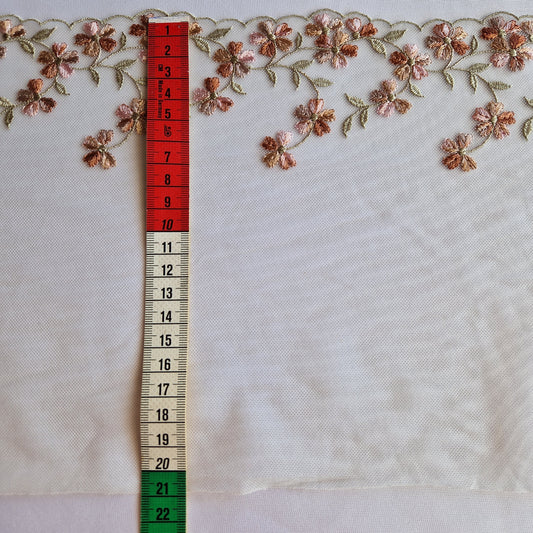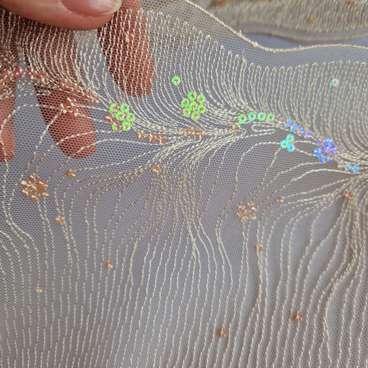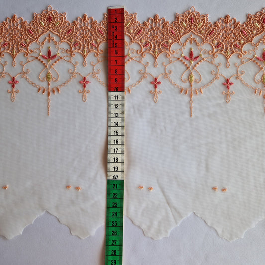 2025-63 licht peach tulekant met fantasie borduursel voorzien van iriserende pailletten