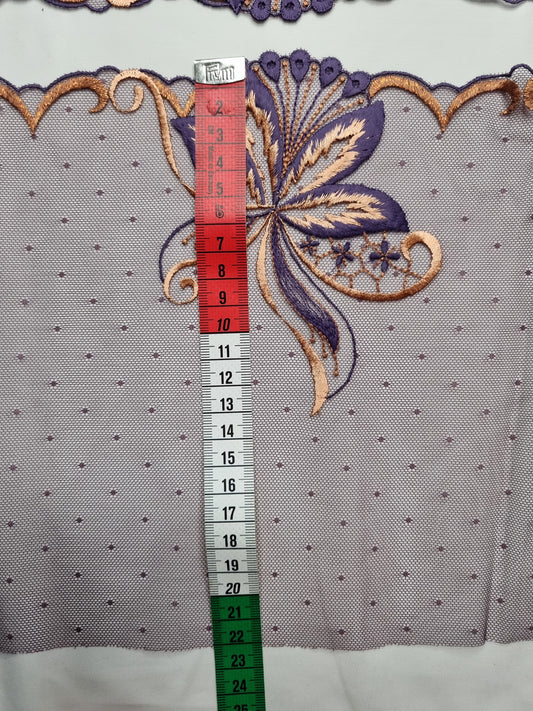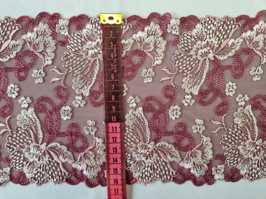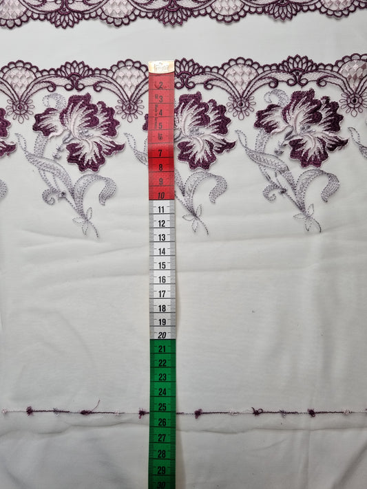Prachtig bordeaux tule kant met bloemen borduursel met stretch
