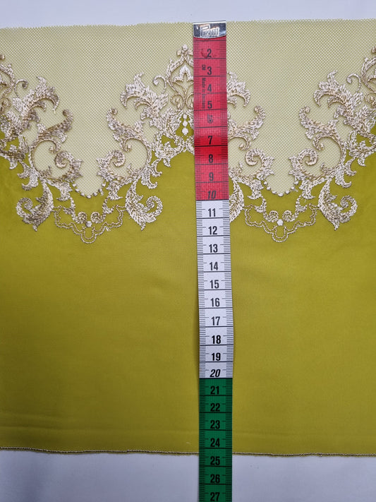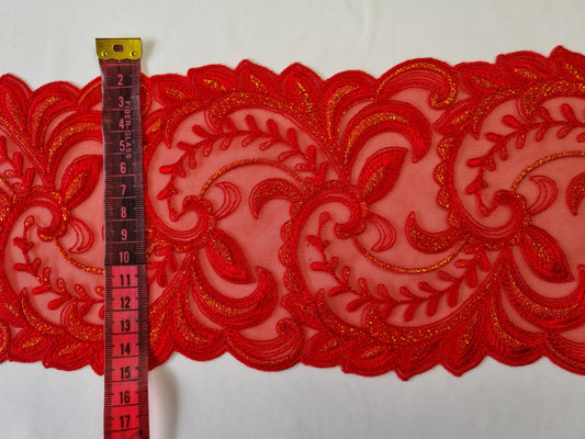 Kerstrood tule kant met barok borduursel met lurex gouddraad