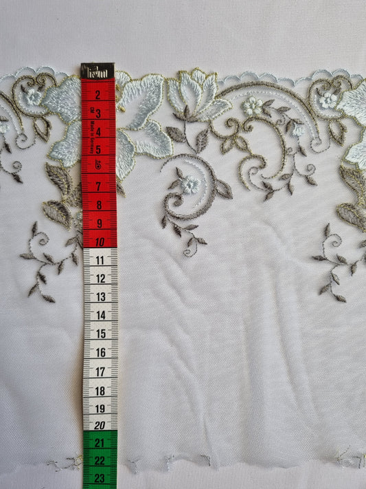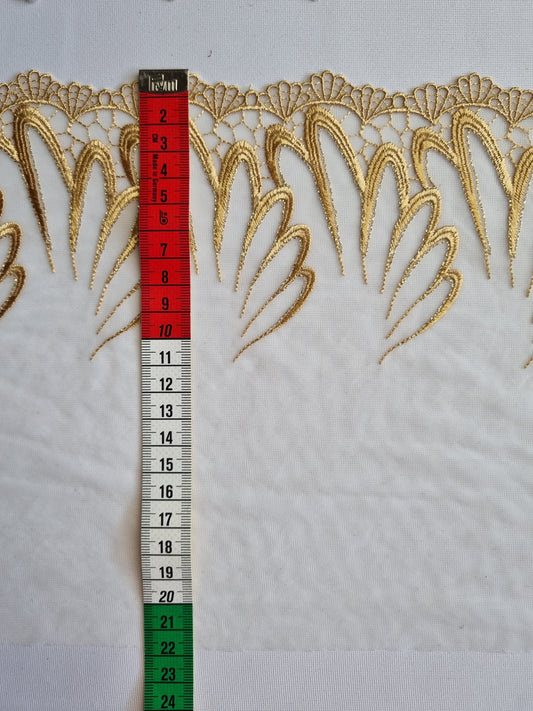 Wit tule kant met goudkleurig borduursel