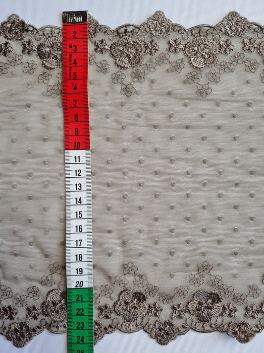 Bruin geborduurd stretch kant