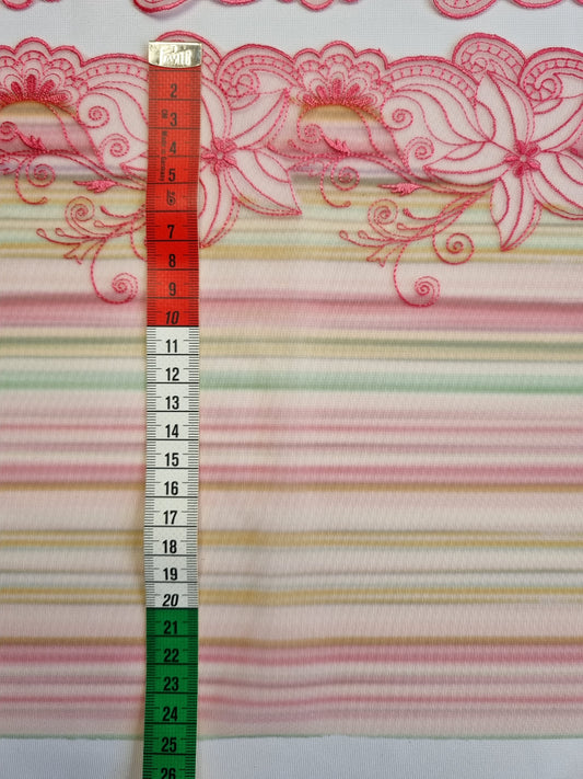 Tule kant met bont gestreepte print en roze geborduurde lelies