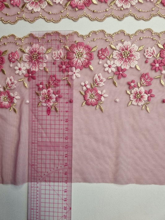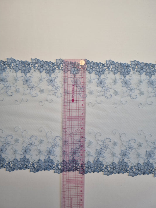 poeder blauw tule kant met ton sur ron bloemenborduursel
