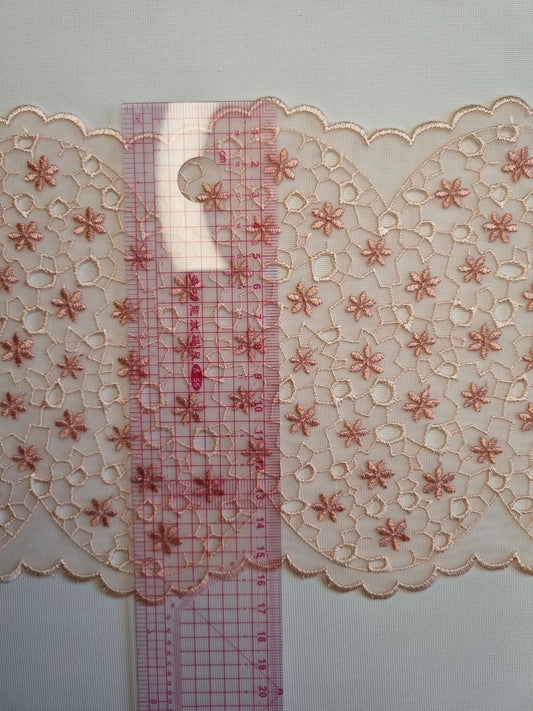 Geborduurd kant op geweven chiffon in timber met pastelkleurige bloemetjes