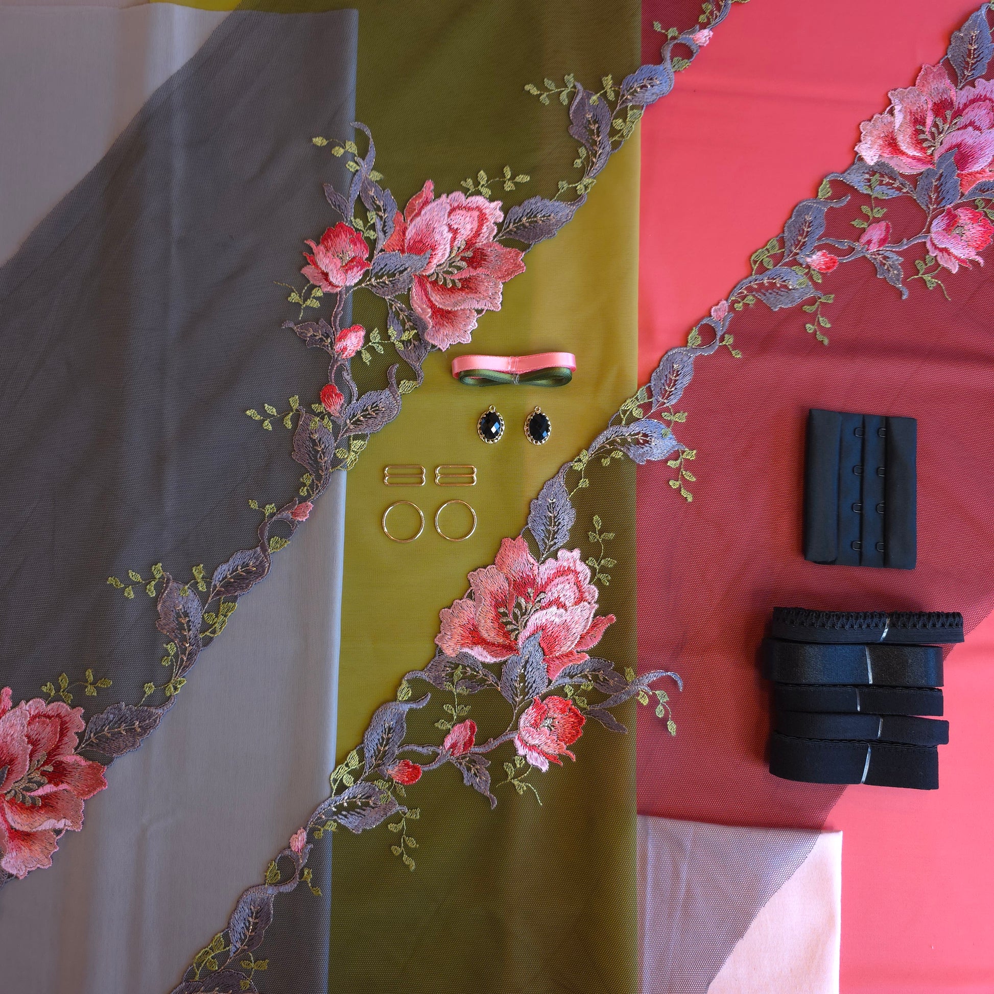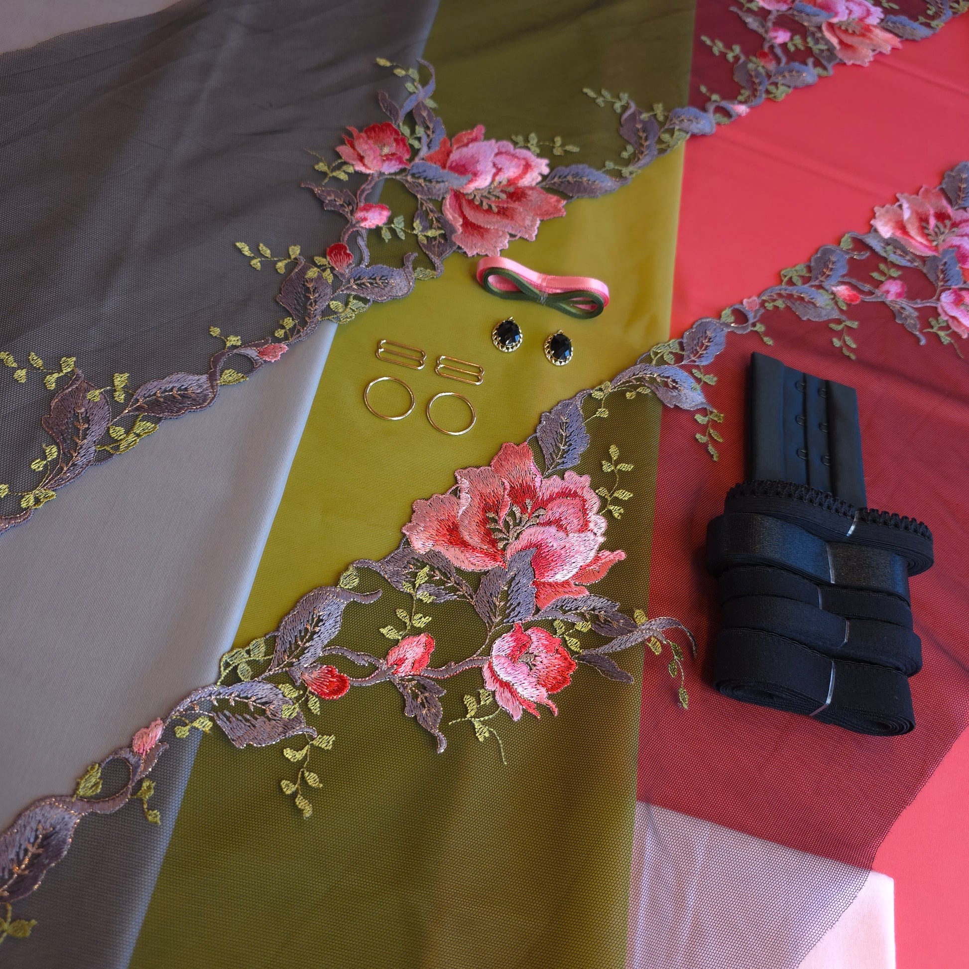 Deze kit is geschikt voor de meeste patronen en bevat ruim voldoende materiaal voor het maken van een bh en slip. Check voor aanschaf wel even of de inhoud van de kit overeen komt met de benodigdheden volgens de patronen die jij wilt gebruiken!! In de kit zitten GEEN patronen, beugels en garen.