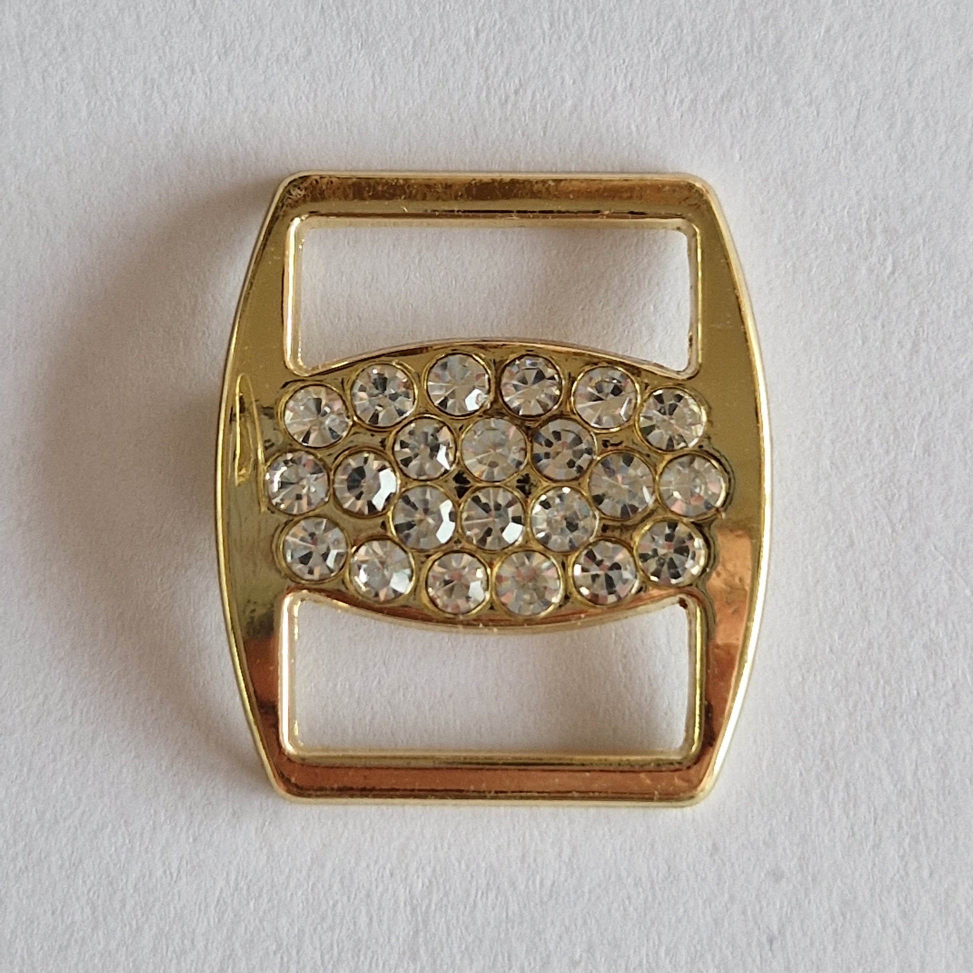 goudkleurige connector met glassteentjes, geschikt voor 15mm schouderband
