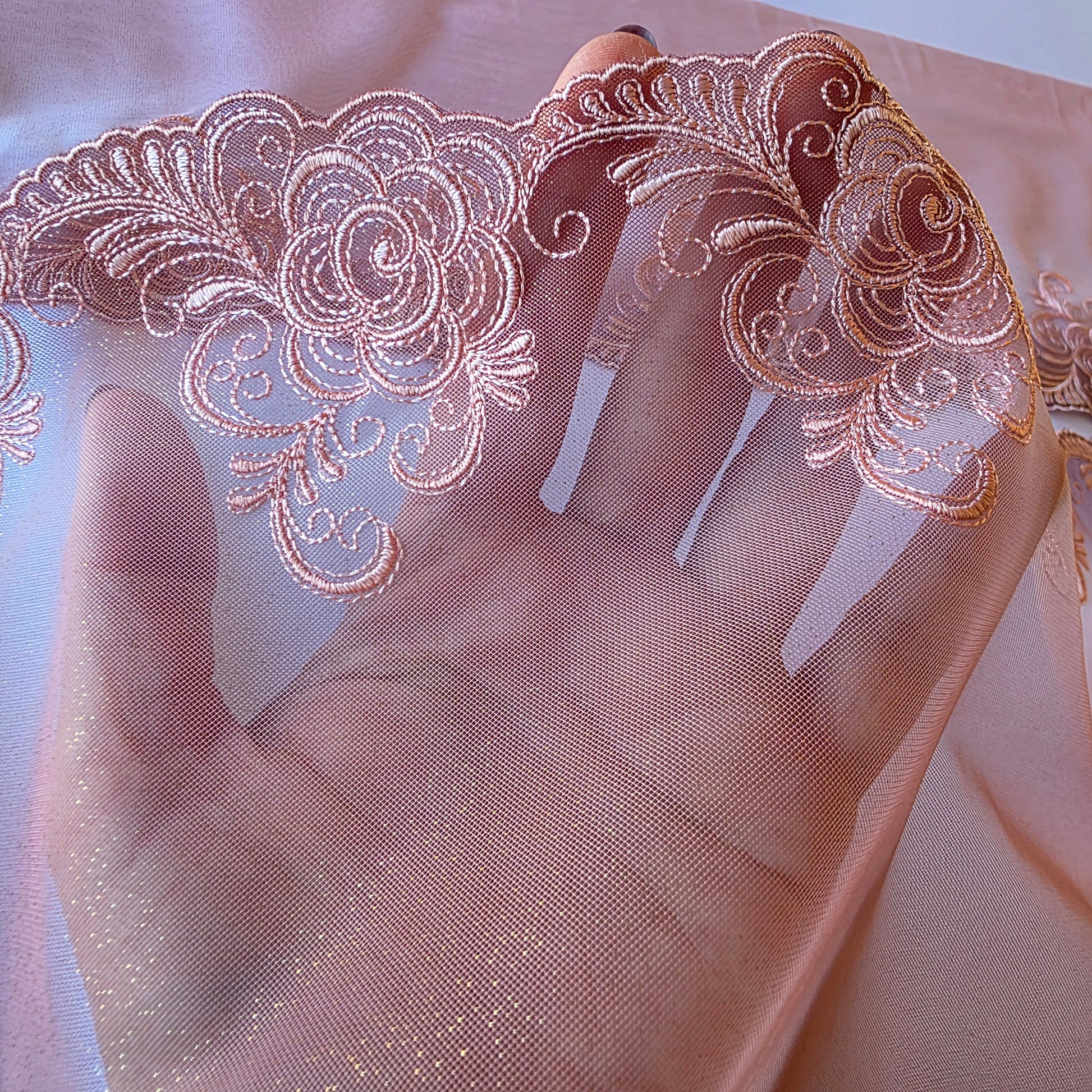 2025-93 ombre mauve kleurig tulekant met goudkleurige spikkelprint en geborduurde rozen