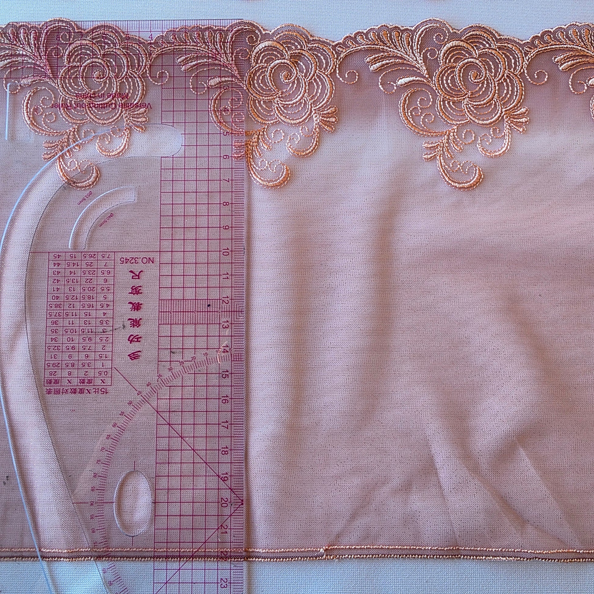 Dit kant bestaat uit links en rechts (gespiegeld) kant. Het is 21cm breed en heeft een beetje mechanische rek in de hoogte