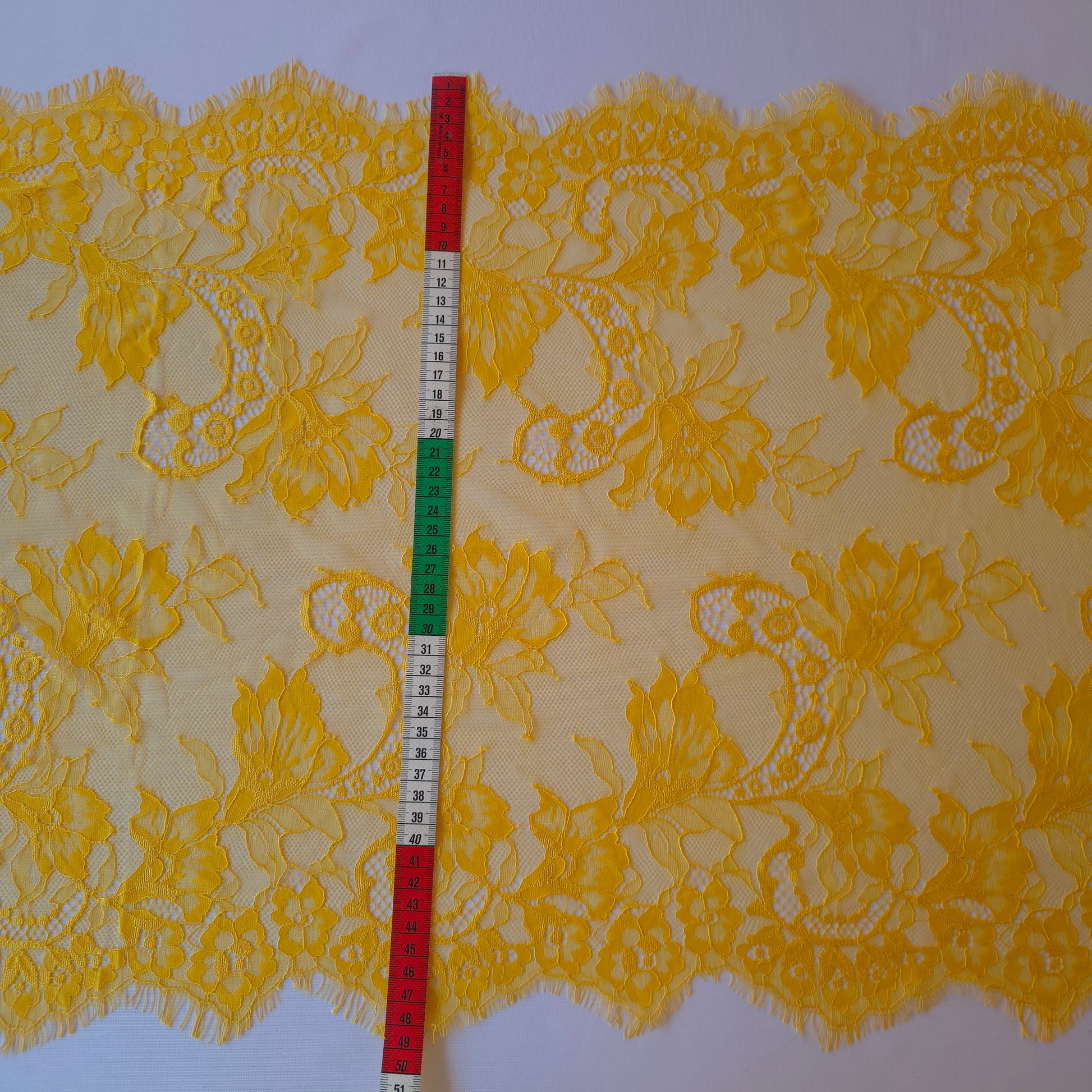 Frans wimperkant met een breedte van maar liefst 49cm. dit kant heeft een klein beetje mechanische rek.