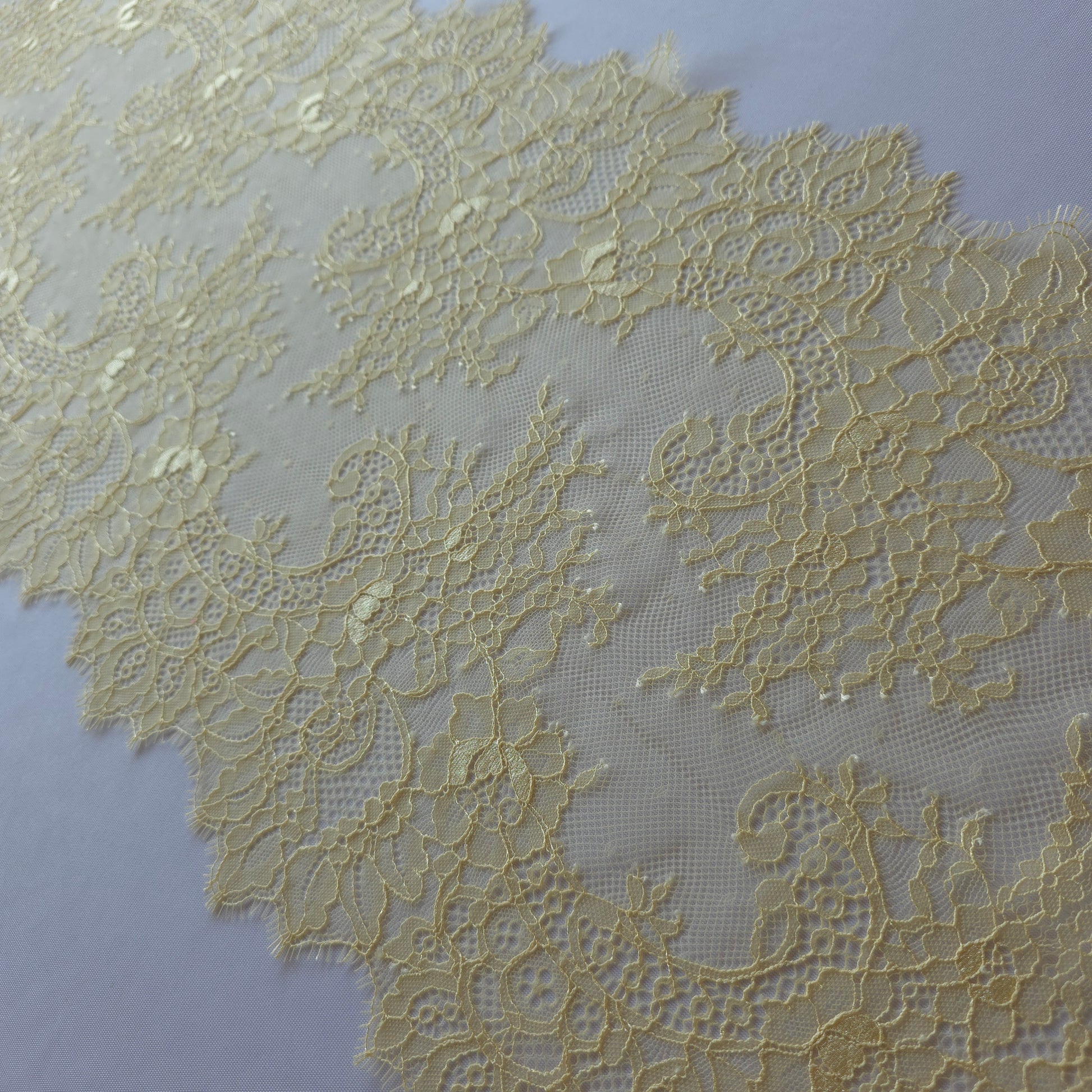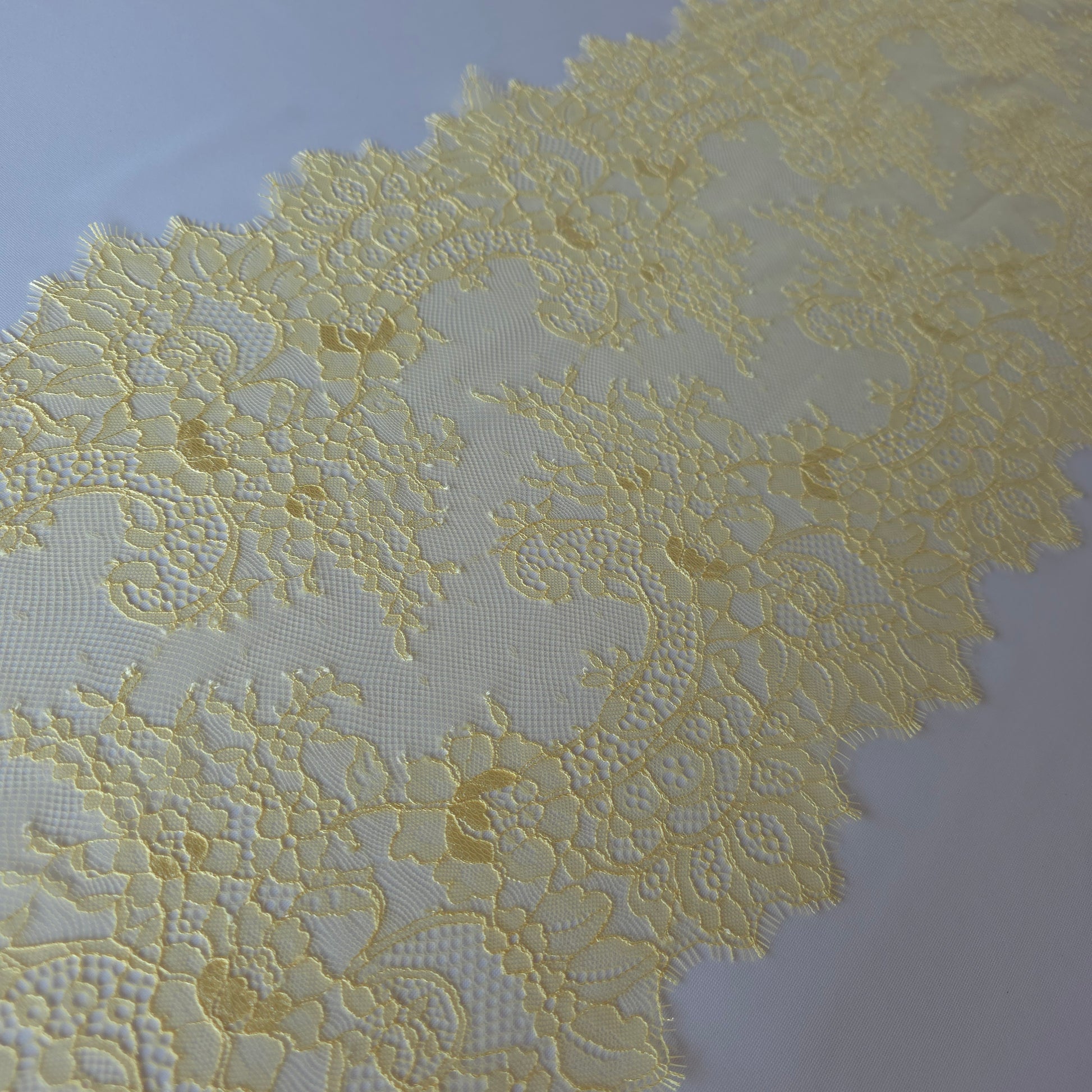 Frans wimperkant met een breedte van maar liefst 34cm. dit kant heeft geen rek